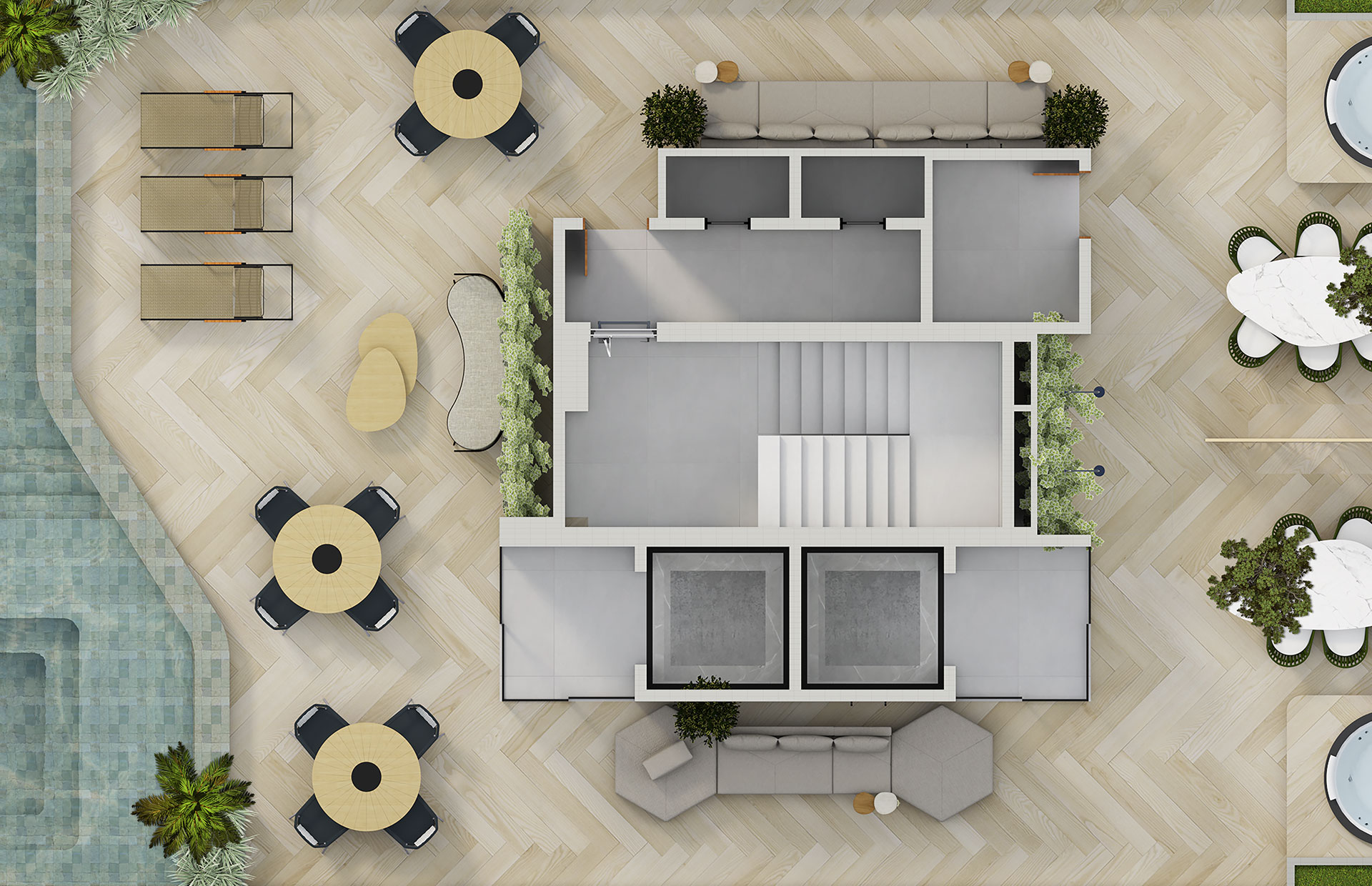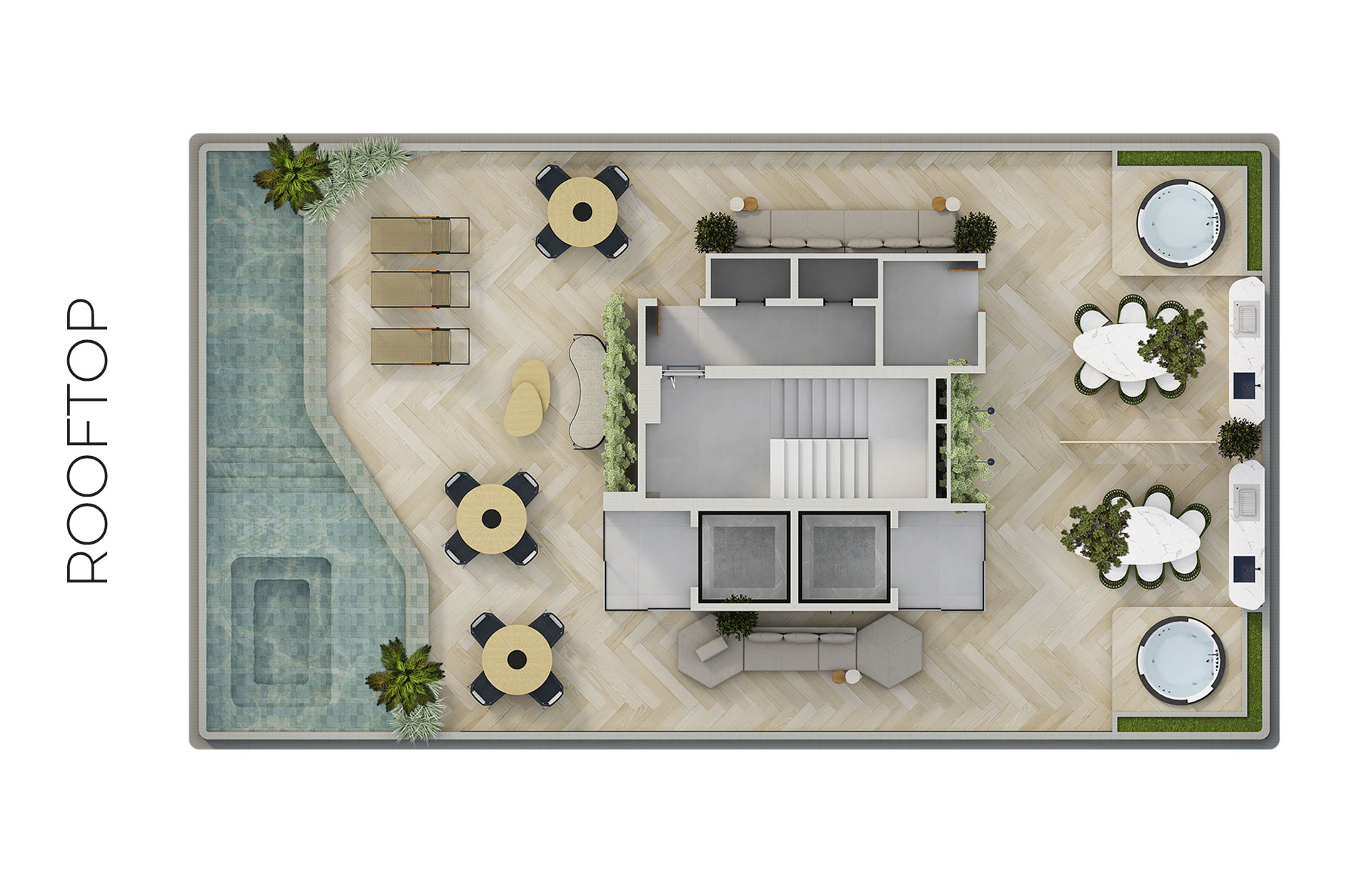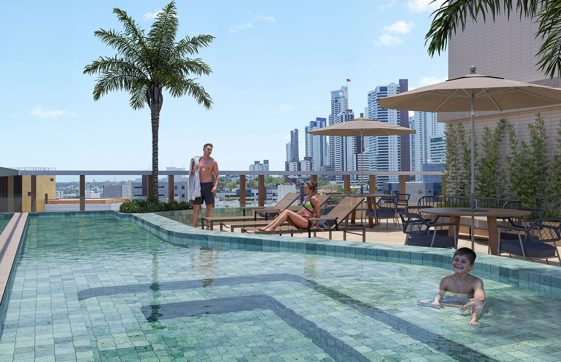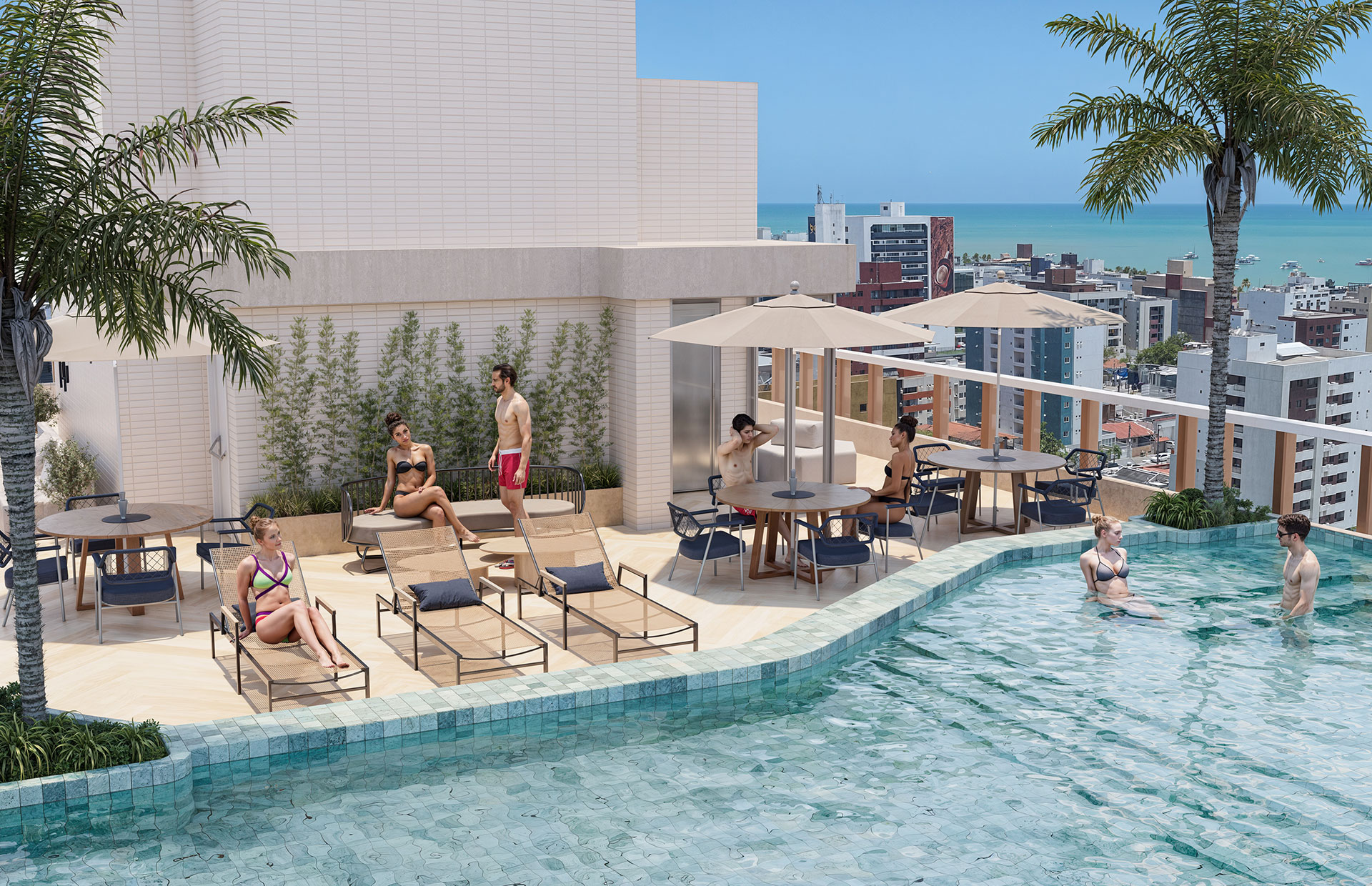 Cada detalhe do Rooftop do UNIQ Stay foi planejado para oferecer um estilo de vida exclusivo, onde o bem-estar e a convivência se encontram no topo.