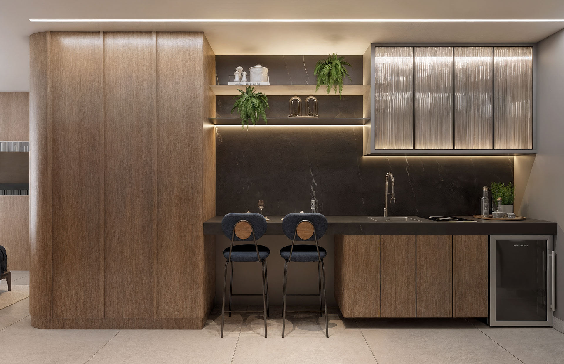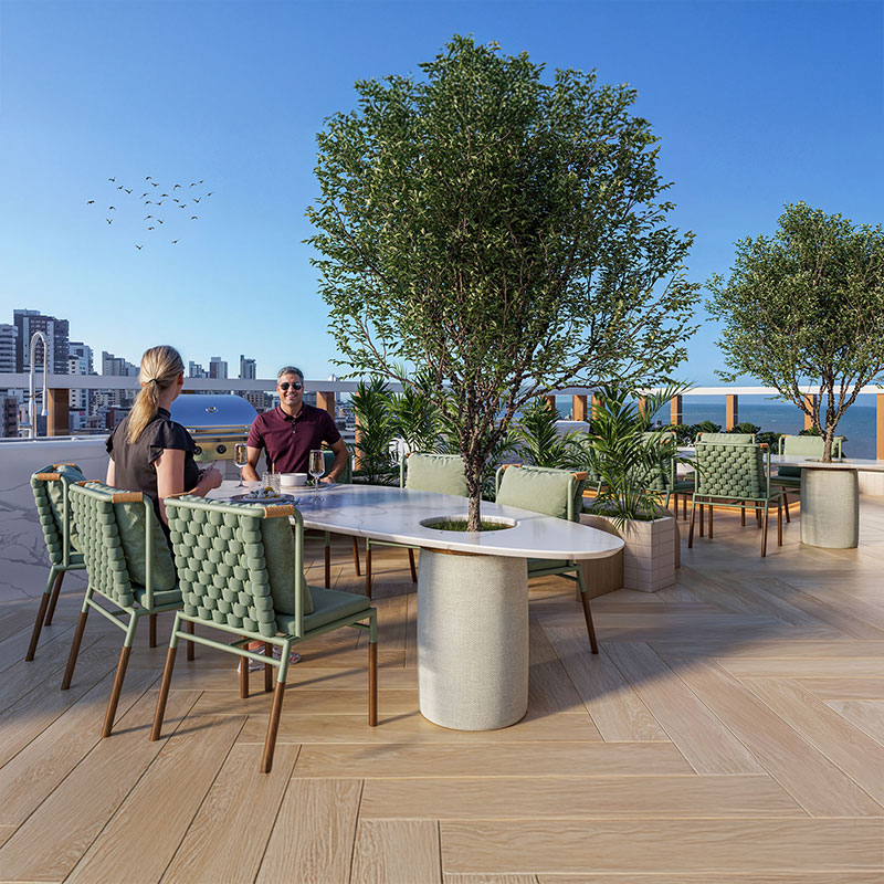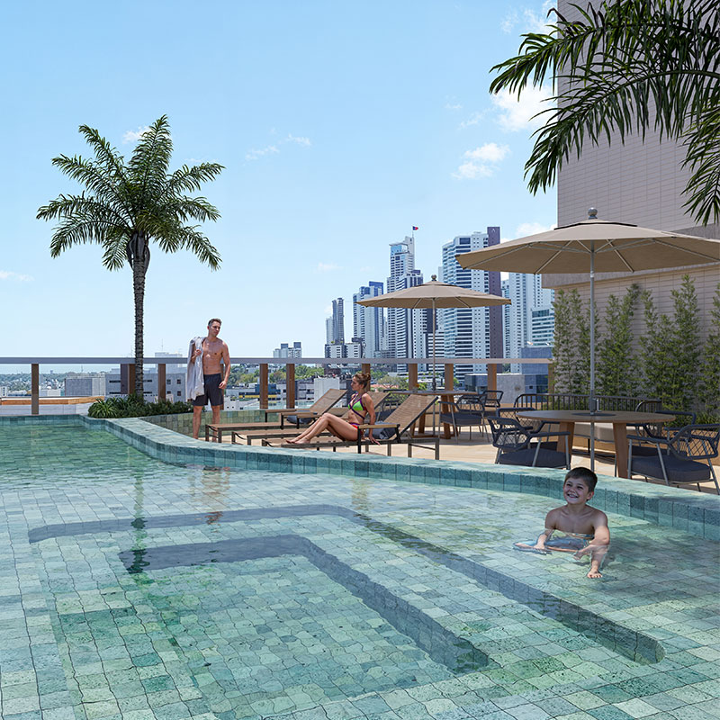 O ambiente foi pensado para proporcionar experiências únicas: mergulhe na piscina com hidromassagem cercada por paisagismo elegante, relaxe na Area Lounge com espreguiçadeiras e sofás aconchegantes, ou aproveite os momentos ao ar livre nas duas Áreas Gourmet completas, equipadas com Ilha Grill e Jacuzzi privativa.