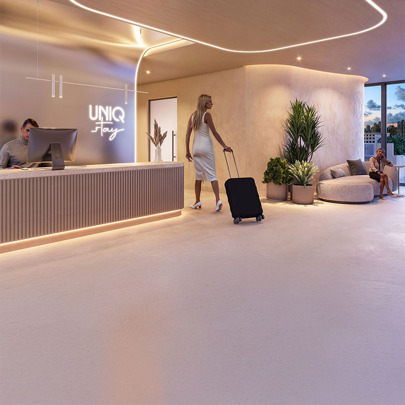 UNIQ Stay nasce com uma missão clara: ser a escolha mais inteligente para quem deseja investir em um produto contemporâneo, rentável e estrategicamente localizado no bairro Cabo Branco, o endereço mais valorizado e turístico de João Pessoa. Pensado para o mercado de aluguel por temporada, o UNIQ Stay une hoteleiro. Dos studios à recepção, tudo foi otimizado para oferecer praticidade, sofisticação e gestão eficiente.